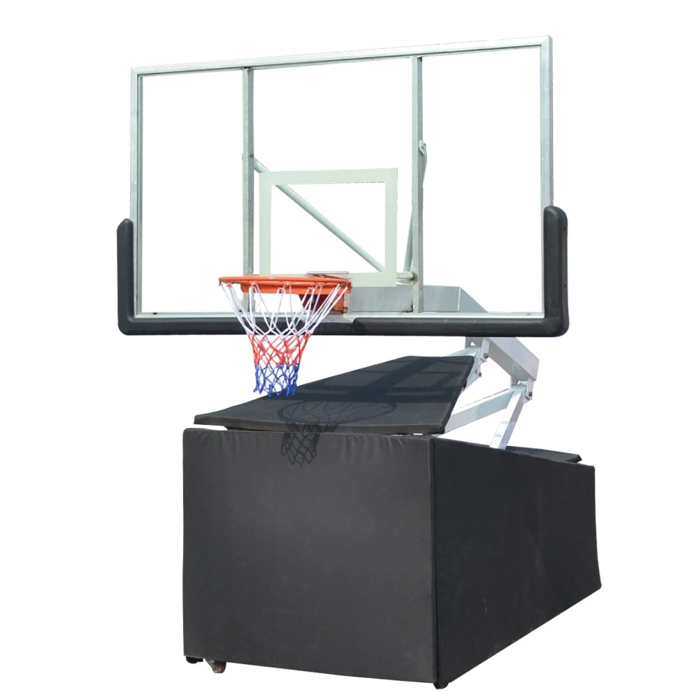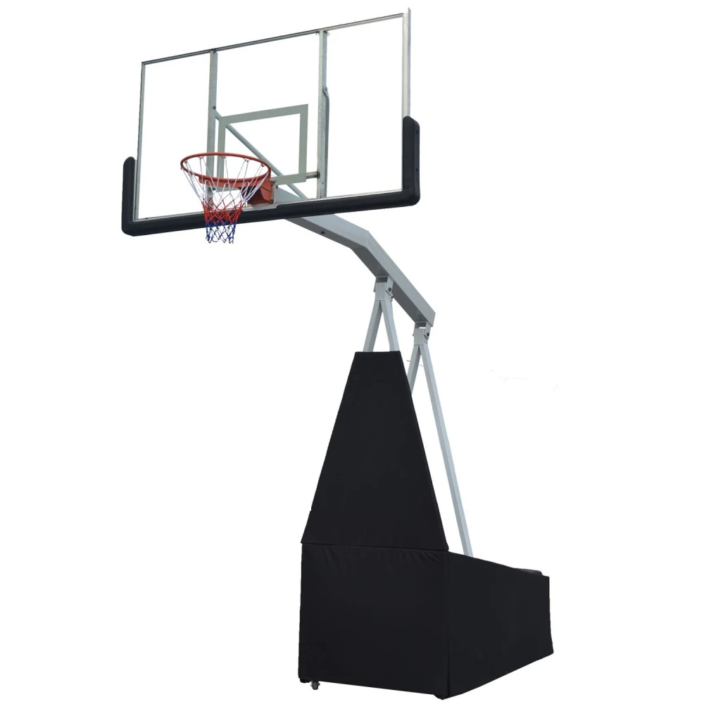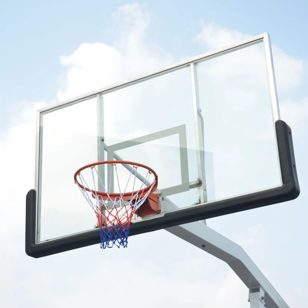 Баскетбольная мобильная стойка STAND72G с щитом размером 180х105 см, изготовленная из закаленного стекла толщиной 10 мм, идеально подходит для использования в помещениях.