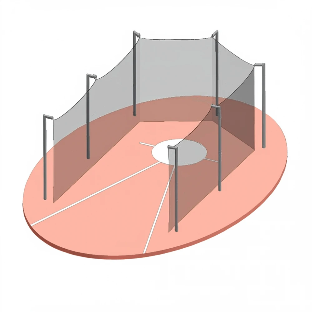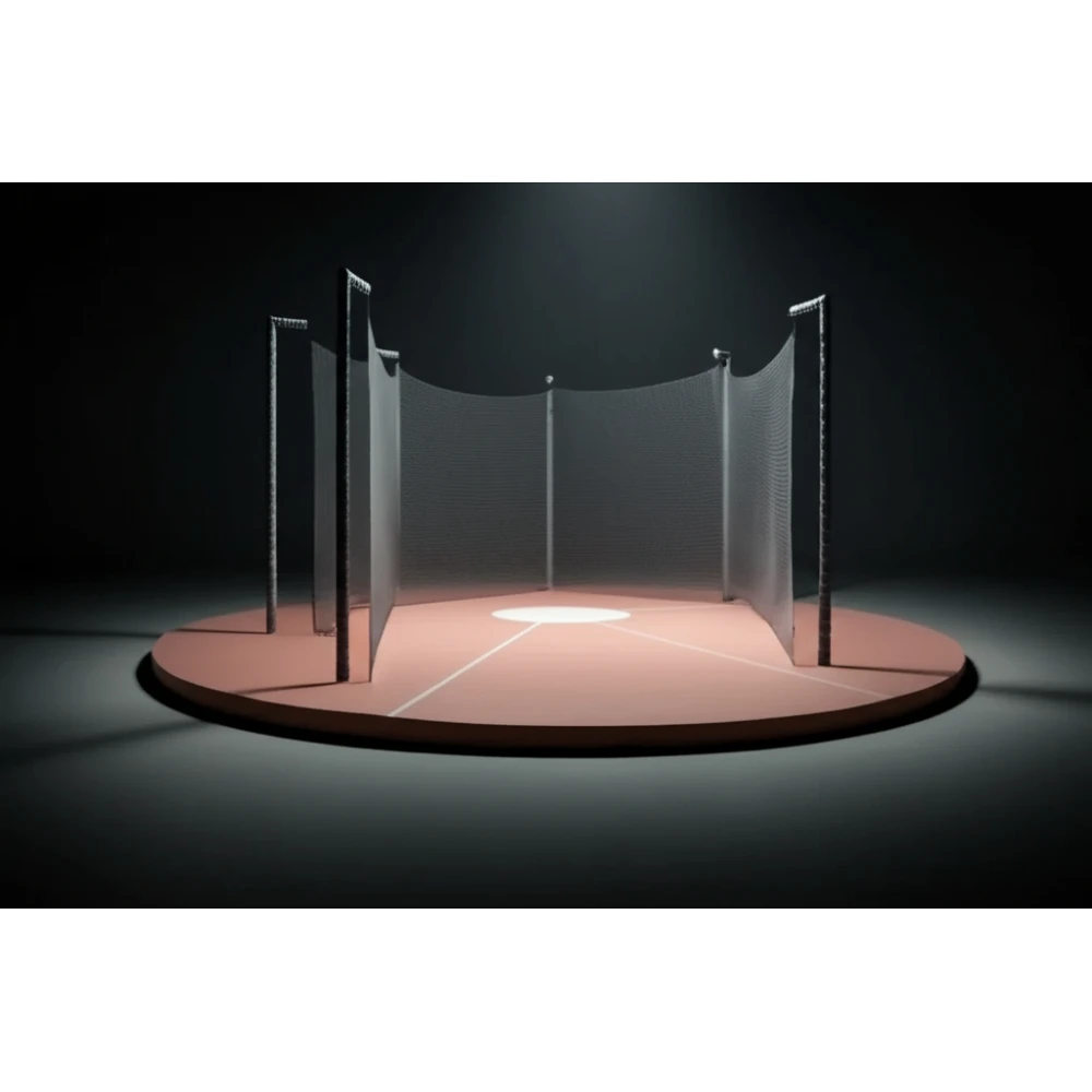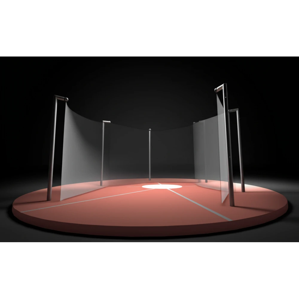 Сектор для метания состоит из 7 опорных столбов высотой 5 метров с прочными стаканами, предназначен для тренировок и соревнований по метанию молота и диска.