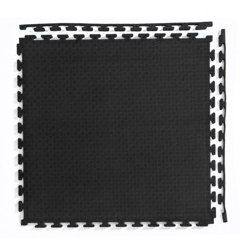 Монолитное черное покрытие увеличенной толщины (25 мм). Дополнительные 5 мм полимера (по сравнению со стандартным 2-см матом) существенно повышают комфорт при тренировках лежа и улучшают звукоизоляцию.